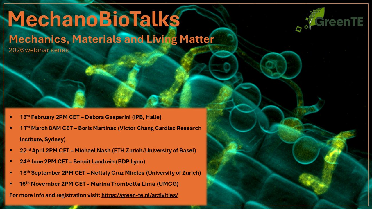 We are very happy to announce the start of the webinars series ”MechanoBioTalks – Mechanics, Materials and Living Matter” an initiative organized by our young researchers. The aim of the webinar series is to bring together and inspire researchers interested in biomechanics, biophysics and biology across different kingdoms of life.